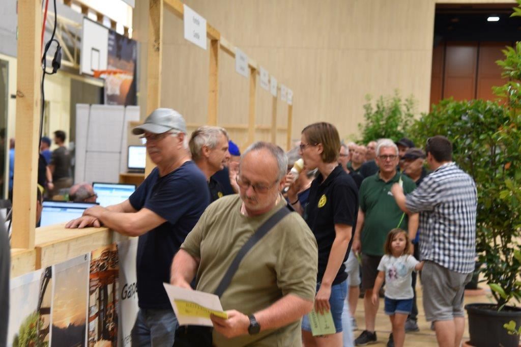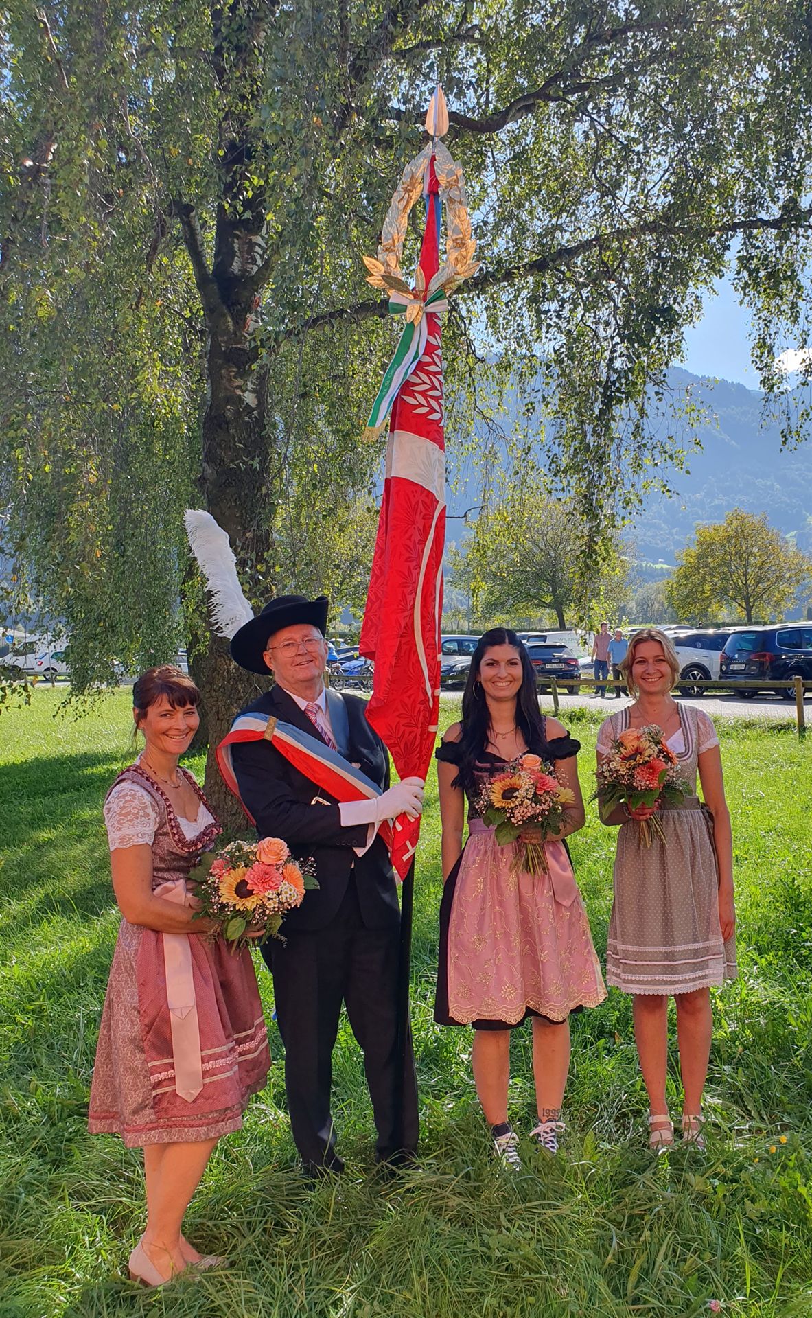die Delegation unter Leitung der Präsidentin Sandra Alherr in der vollbesetzten Festhalle voller Stolz den verdienten Goldkranz entgegennehmen und an der Vereinsfahne anbringen.
